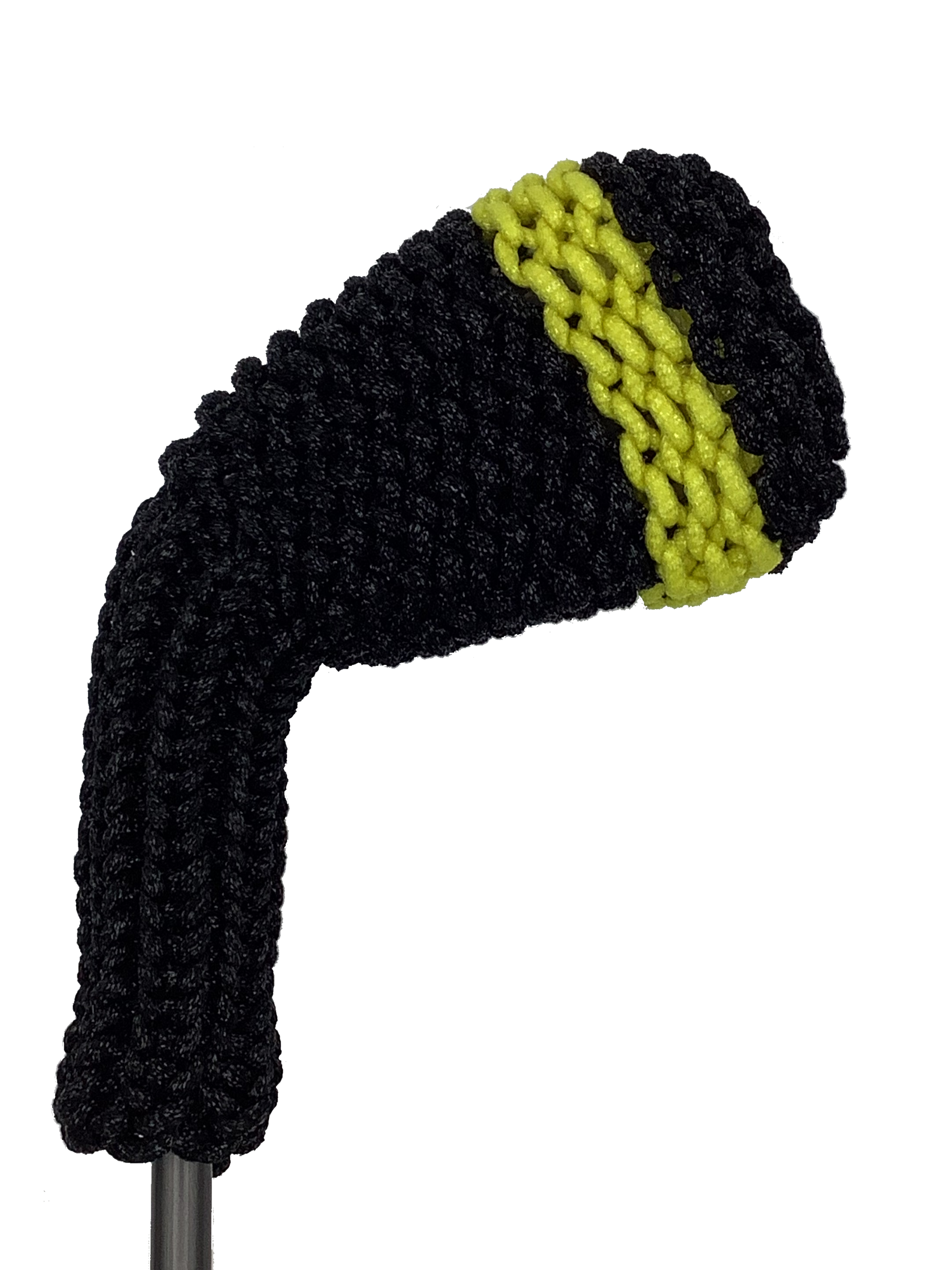 Clean Shot iron headcover in black with lime stripes to represent a 5 iron.