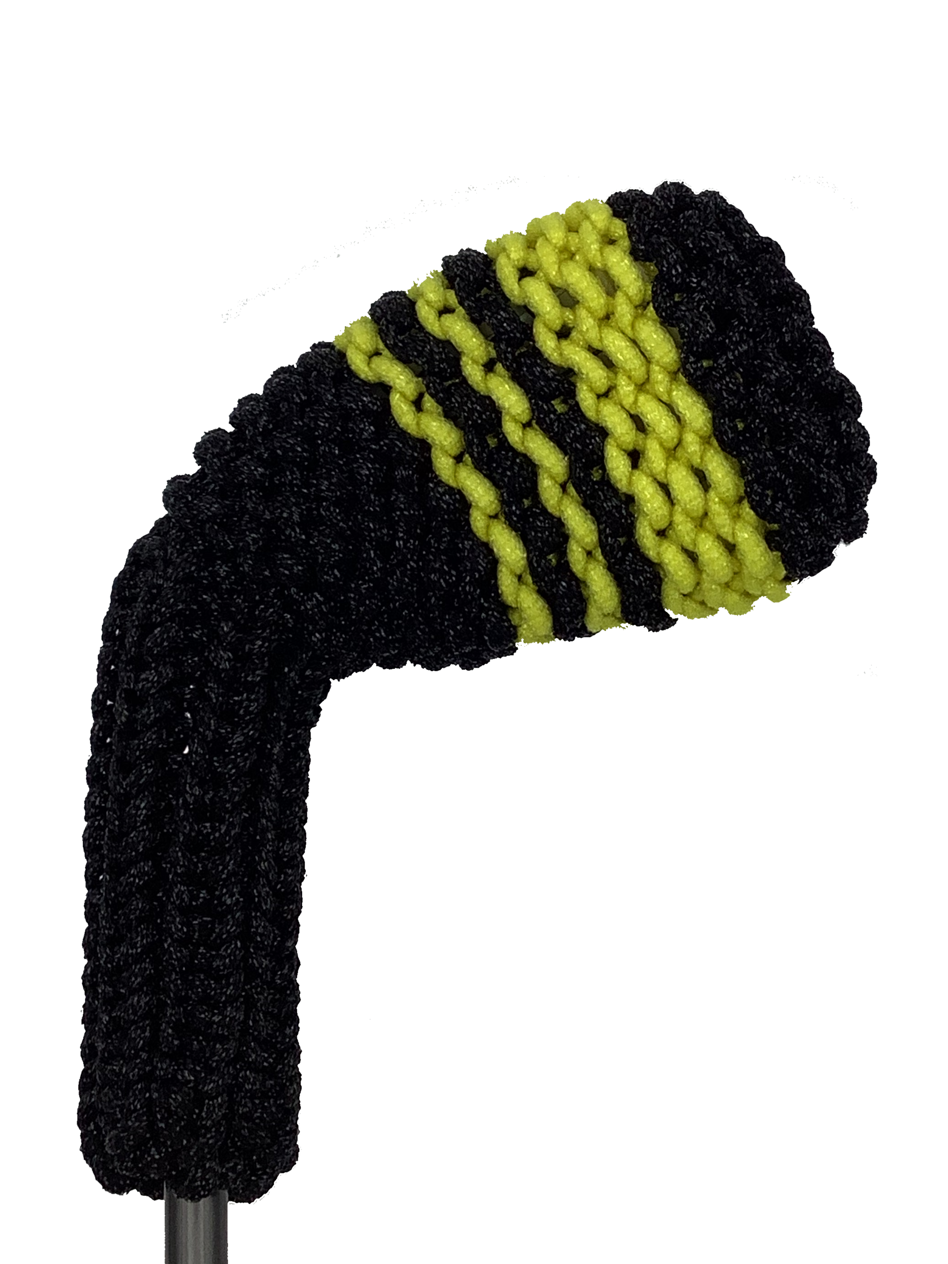 Clean Shot iron headcover in black with lime stripes to represent a 7 iron.