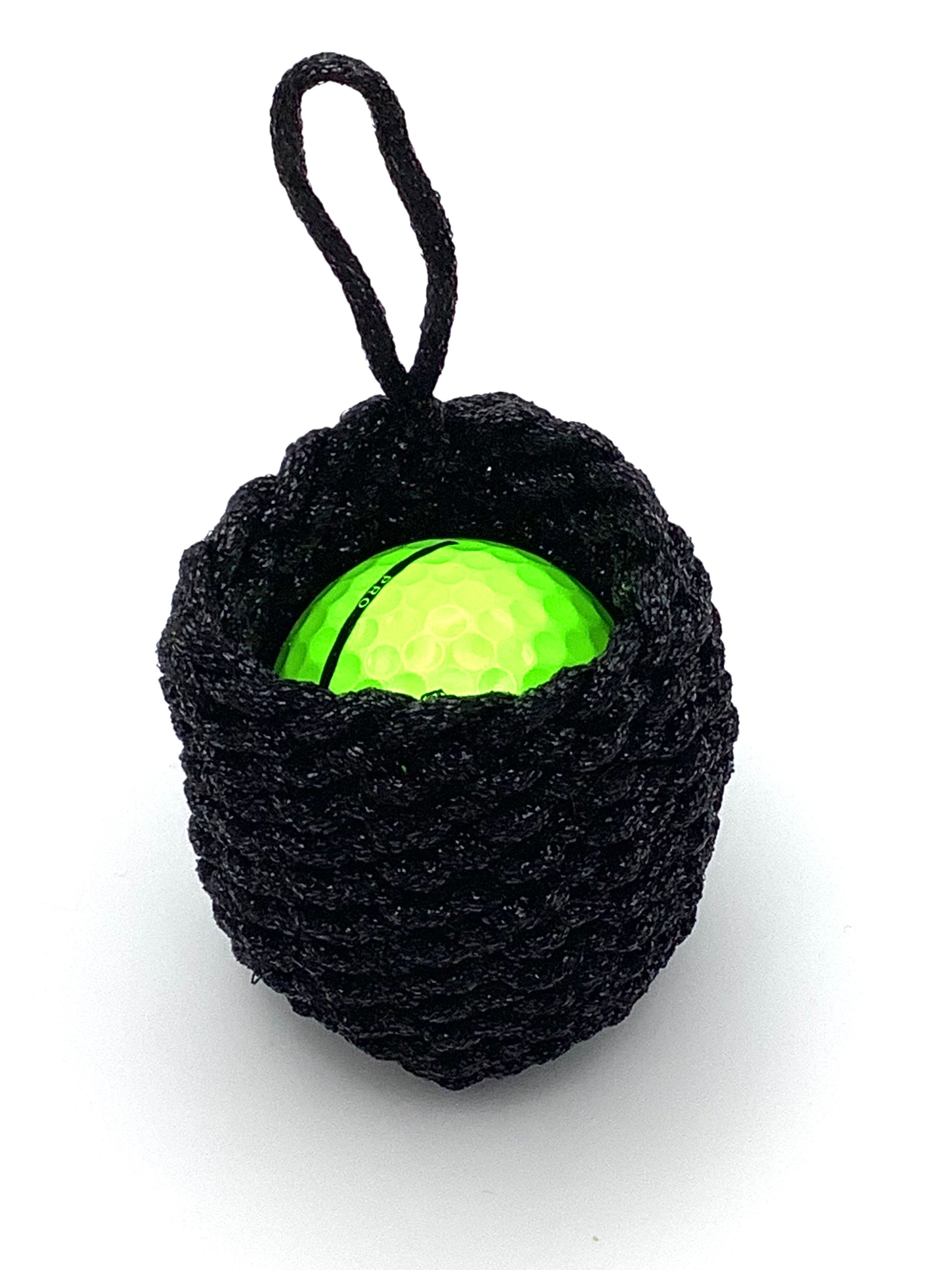 Portable golf ball washer that's always at hand. These little pouches are handknit with a unique yarn made for scrubbing. They are textured yet non-abrasive. Simply drop the dirty golf ball in the pouch, squeeze it around a few times, and the dirt/grass are removed. Water can be poured in from a water bottle/drinking fountain or they can be dipped in water for extra cleaning power. They have a loop for easy attachment to bag and towel clips.