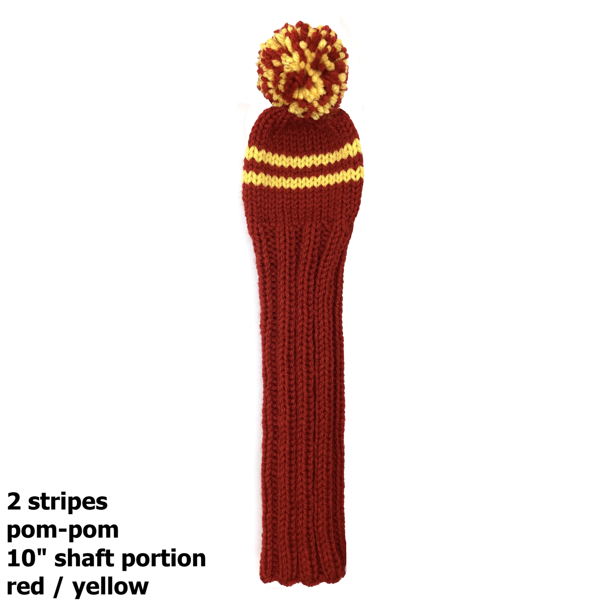 Classic style fairway wood headcover. Choose any one or two colors, number of stripes, topper style and shaft portion length.