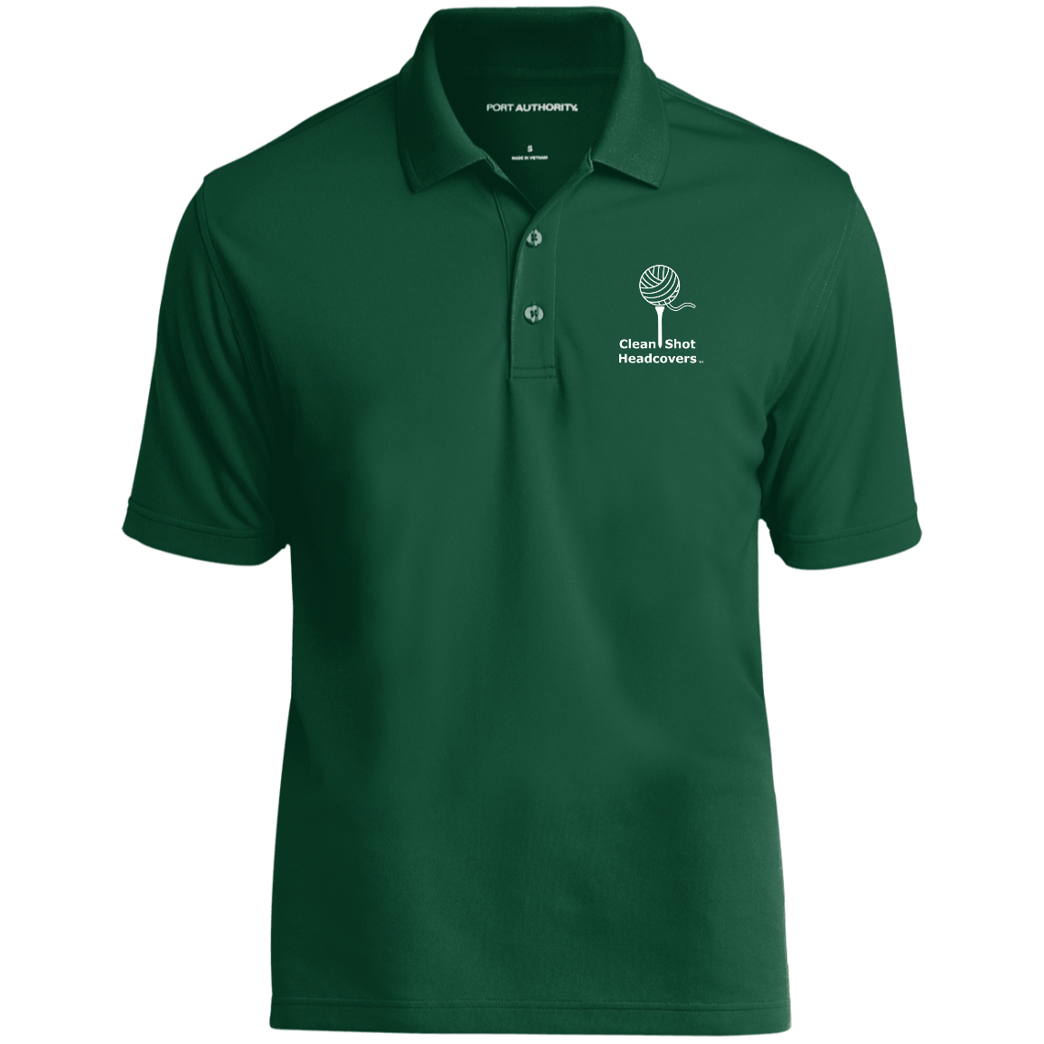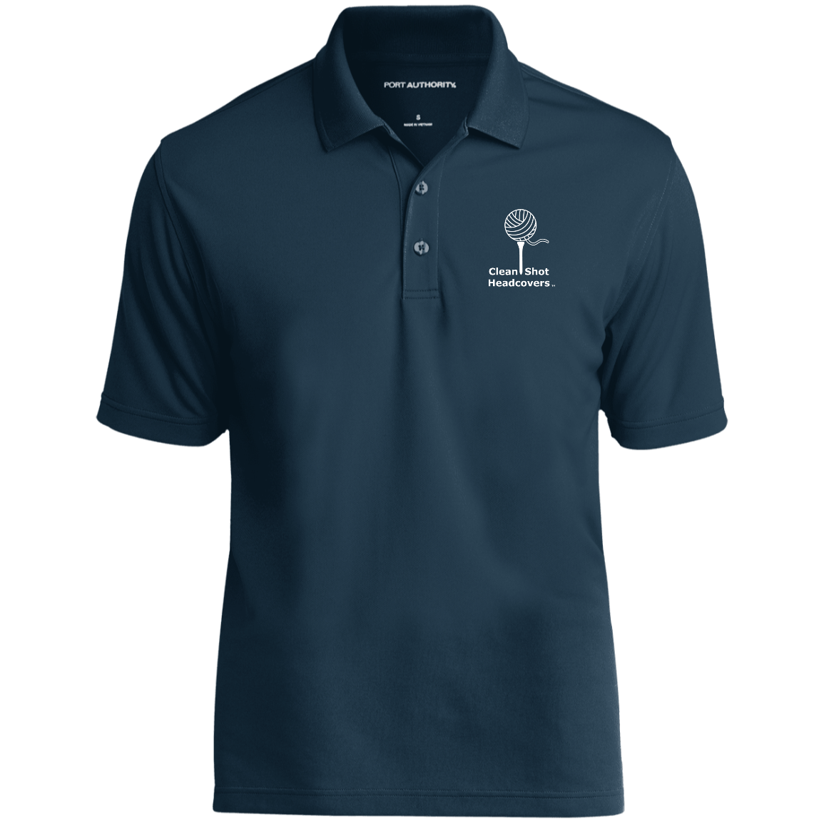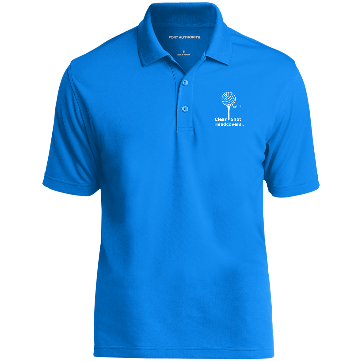 - Flat knit collar; 3-button placket with pearlized, dyed-to-match buttons