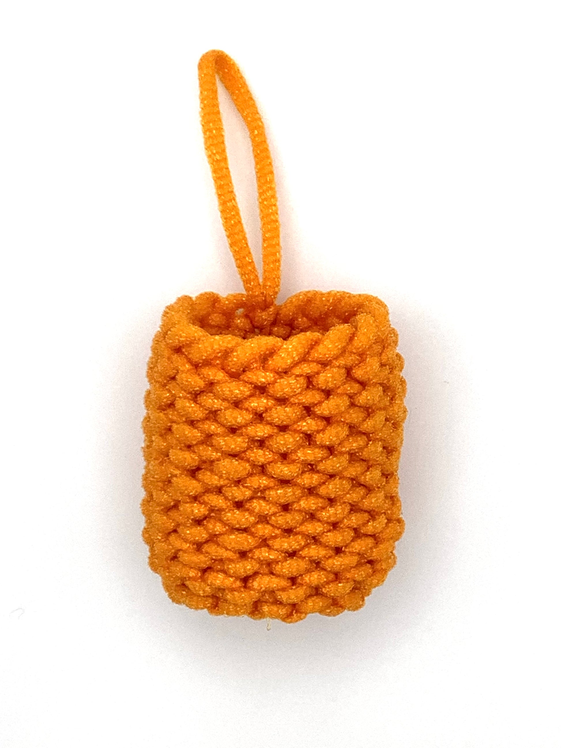 Portable golf ball washer that's always at hand. These little pouches are handknit with a unique yarn made for scrubbing. They are textured yet non-abrasive. Simply drop the dirty golf ball in the pouch, squeeze it around a few times, and the dirt/grass are removed. Water can be poured in from a water bottle/drinking fountain or they can be dipped in water for extra cleaning power. They have a loop for easy attachment to bag and towel clips.