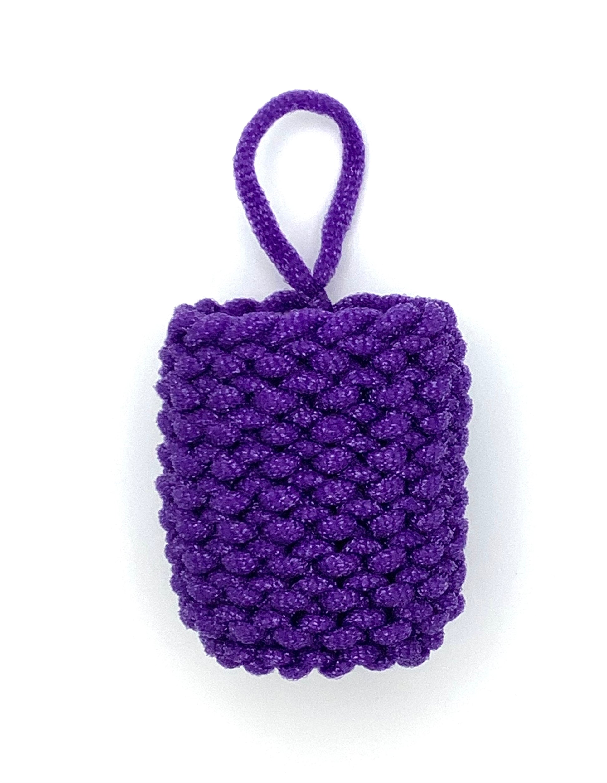 Portable golf ball washer that's always at hand. These little pouches are handknit with a unique yarn made for scrubbing. They are textured yet non-abrasive. Simply drop the dirty golf ball in the pouch, squeeze it around a few times, and the dirt/grass are removed. Water can be poured in from a water bottle/drinking fountain or they can be dipped in water for extra cleaning power. They have a loop for easy attachment to bag and towel clips.