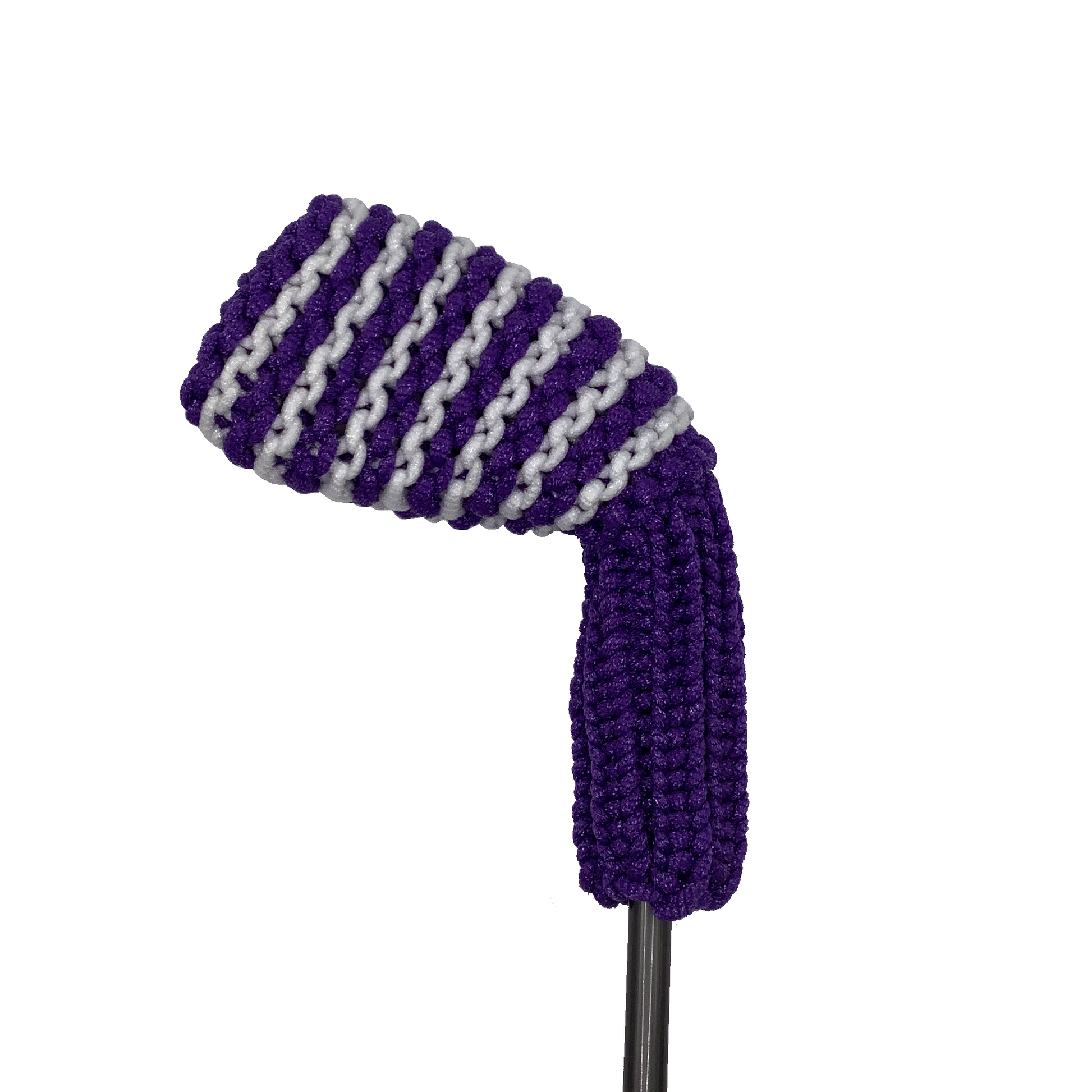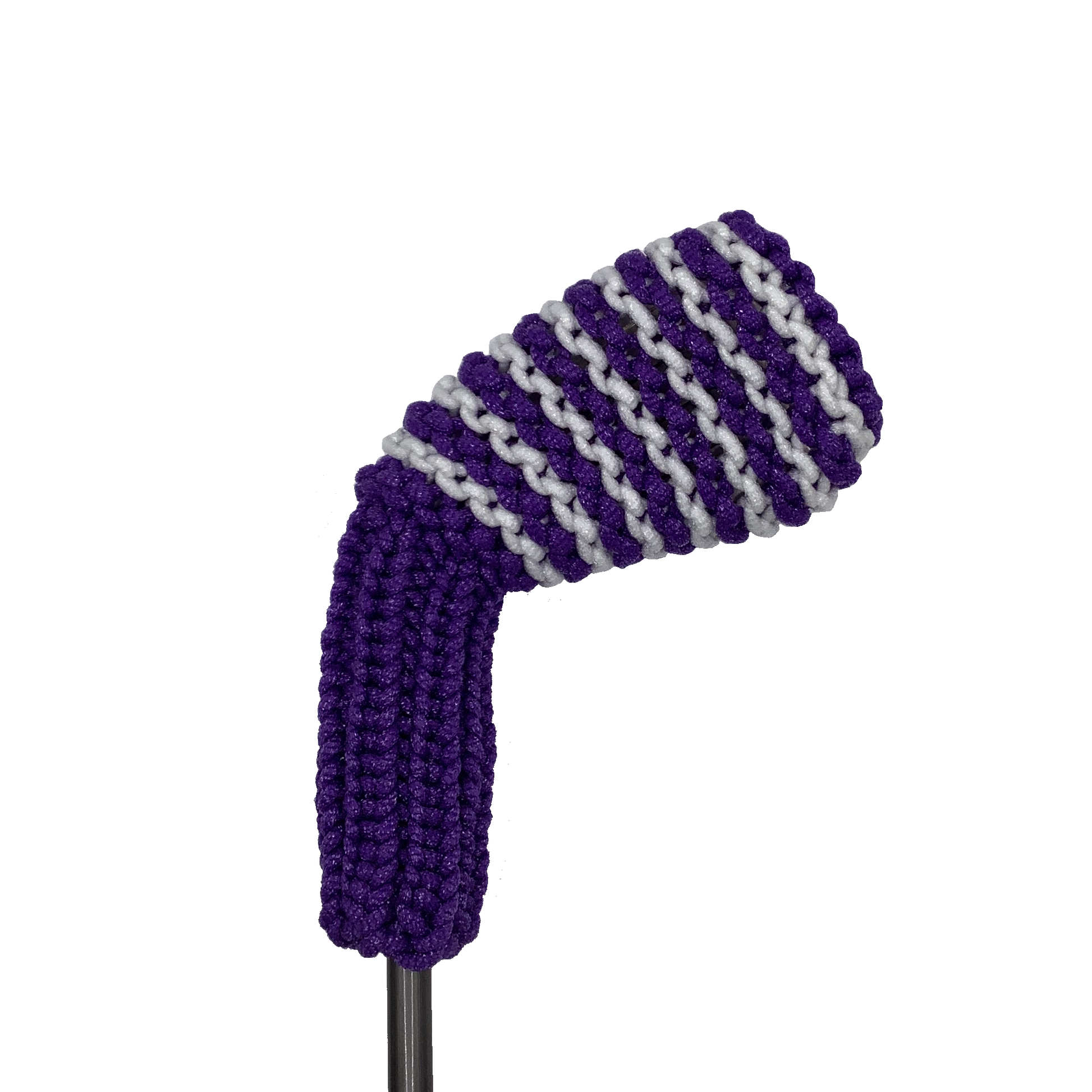 Clean Shot™ iron headcover in purple with small size white stripes. Perfect for a wedge or other iron.